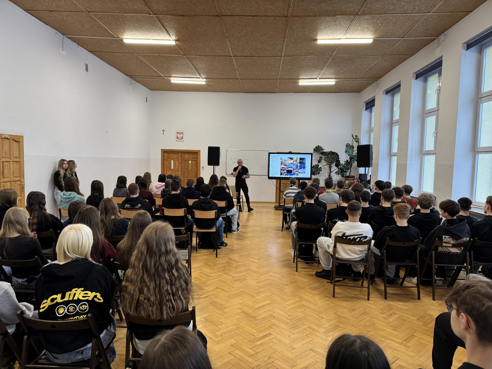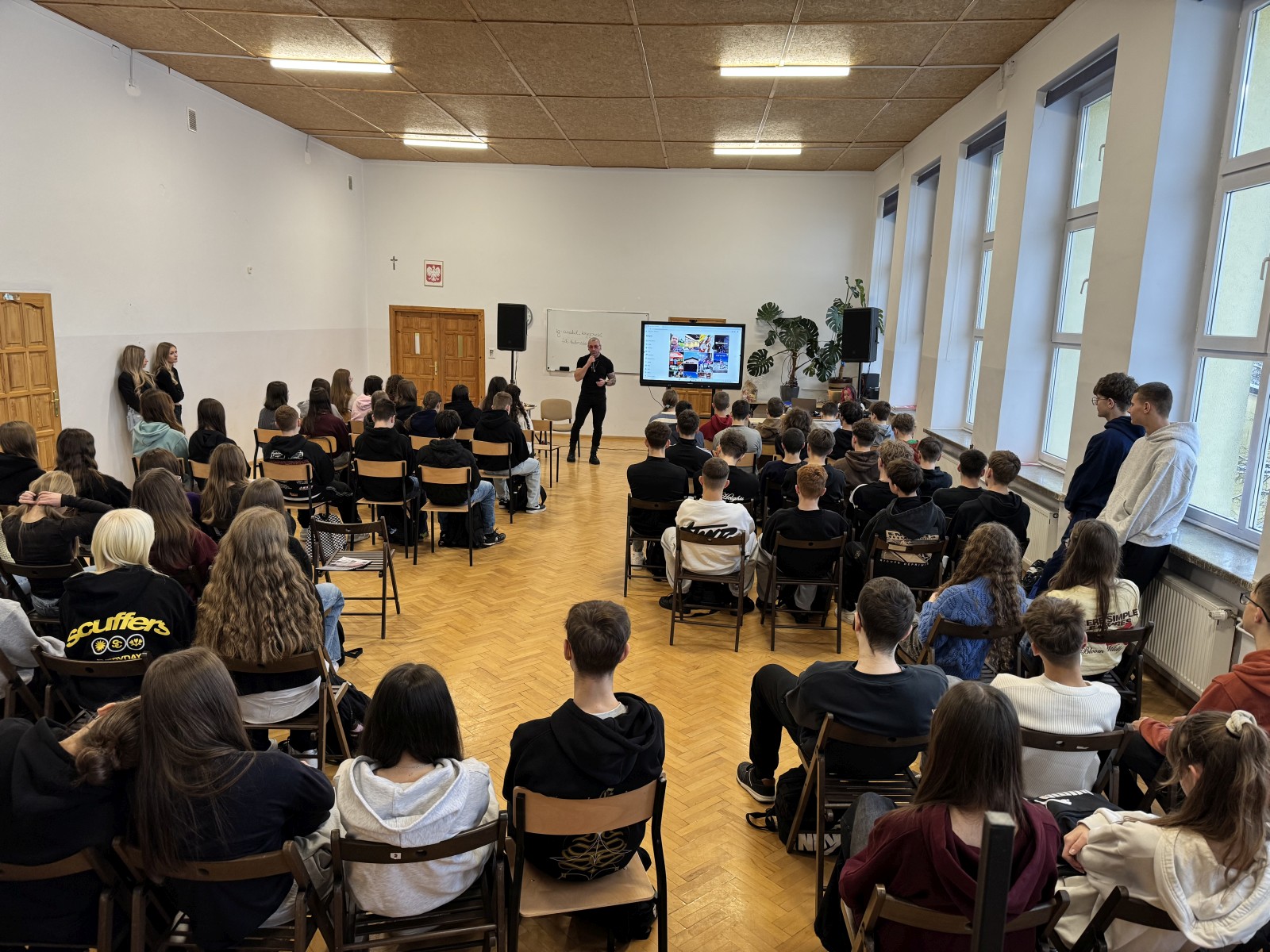 Spotkanie przebiegło w bardzo przyjemnej i przyjacielskiej atmosferze z dużym zainteresowaniem ze strony naszych uczniów – były pytania i rozmowy indywidualne z naszym Gościem.