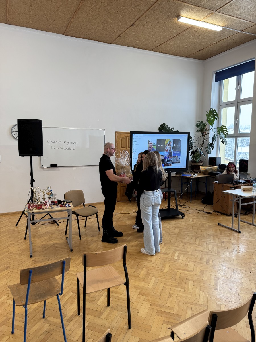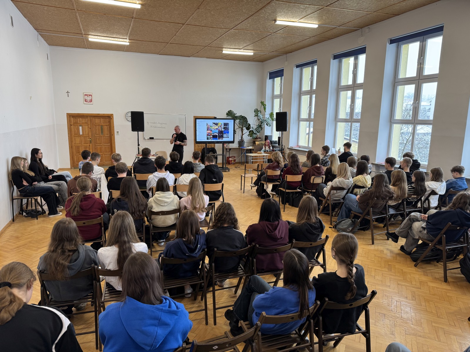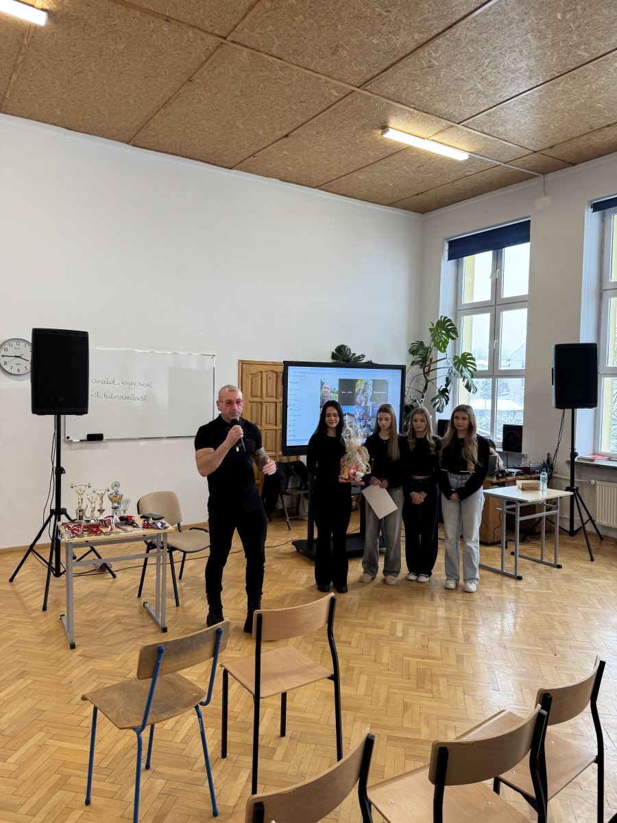 7 stycznia 2026 r. uczennice z klasy 2b działające w grupie „Fit. But make it real.” w ramach Ogólnopolskiej Olimpiady Zwolnieni z teorii, zaprosiły do naszej szkoły wicemistrza świata w dwuboju olimpijskim (podnoszenie ciężarów) Pana Anatola Krygowskiego.