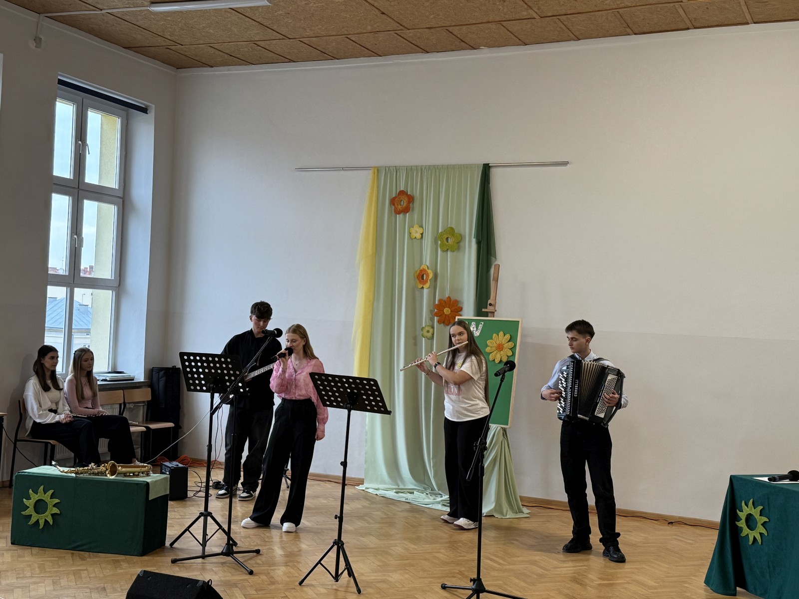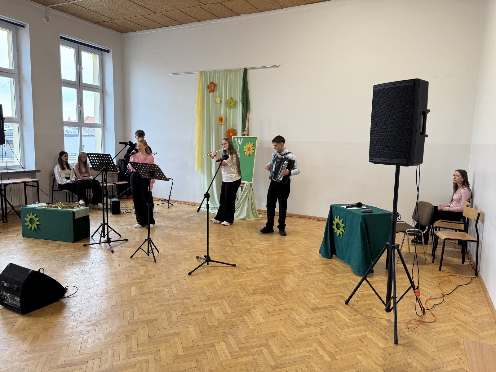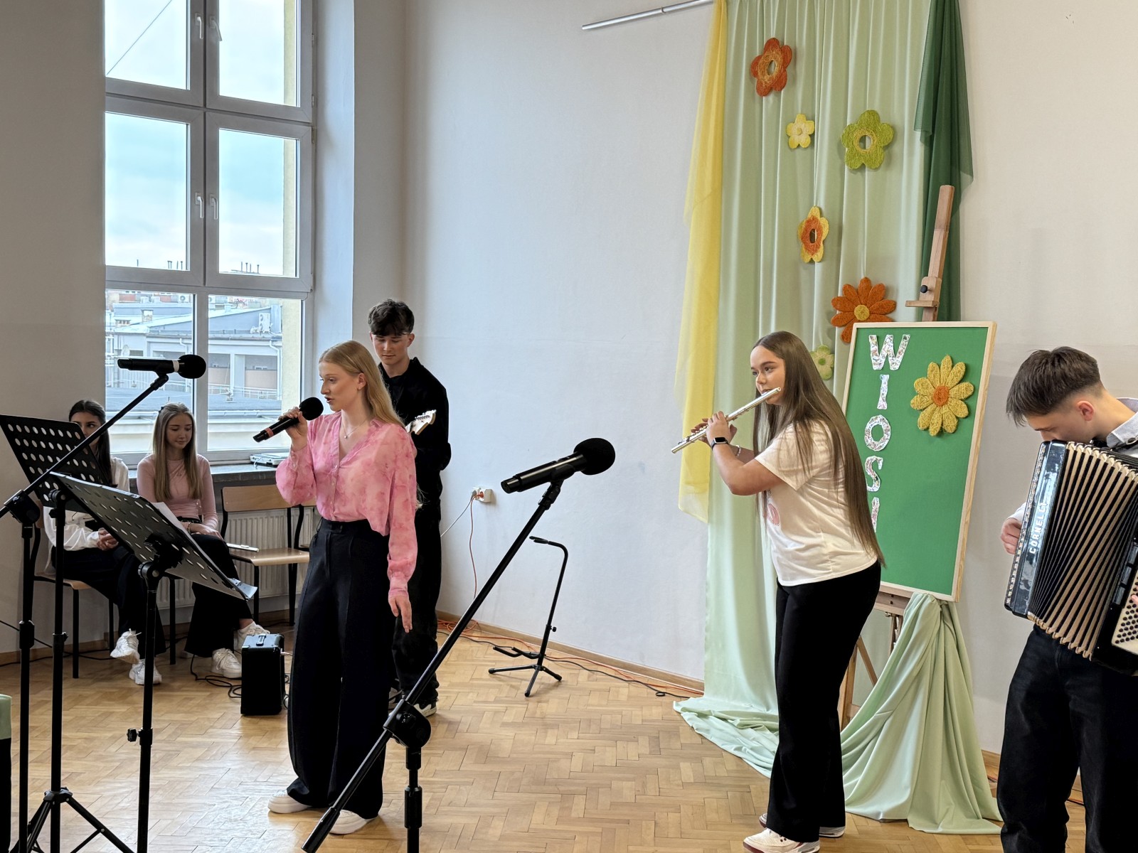 W specjalnym programie wystąpiła młodzież działająca na co dzień w szkolnej Grupie wokalno – instrumentalnej pod kierunkiem nauczyciela i opiekuna grupy Pana Wojciecha Bazana. W programie uczniowie zaprezentowali polskie i światowe przeboje, które były przeplatane cytatami i myślami nt. zbliżającej się wiosny. Była to tym samym wspaniała okazja do wprowadzenia wszystkich w wiosenny nastrój pełny optymizmu.